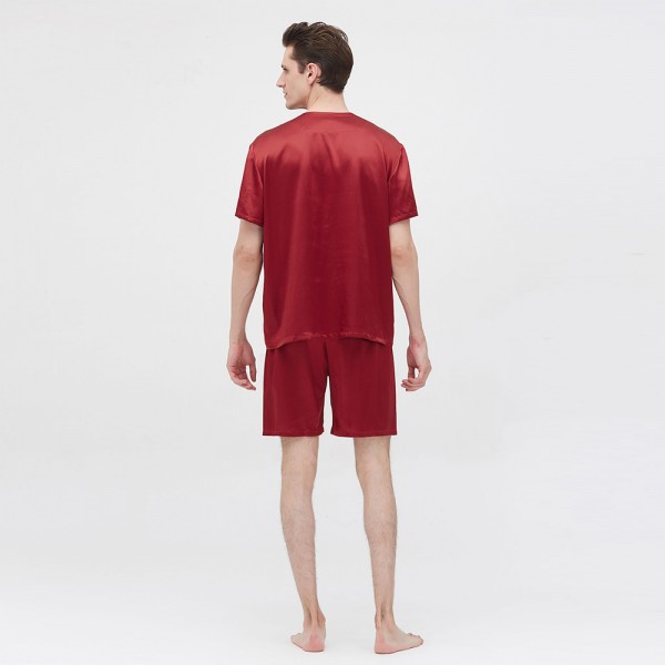 LilySilk Silk Pajamas Set Short 22 Momme Simple Crew Neck Men's Clothing Free Shipping