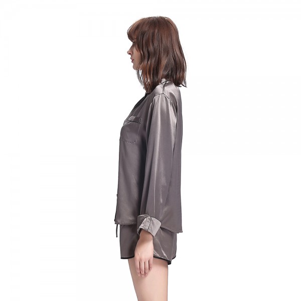 LilySilk 100 Silk Blouses Female Sleeping Shirt Long Sleeve 22 Momme Pajama Top With Trimming Feminino Free Shipping